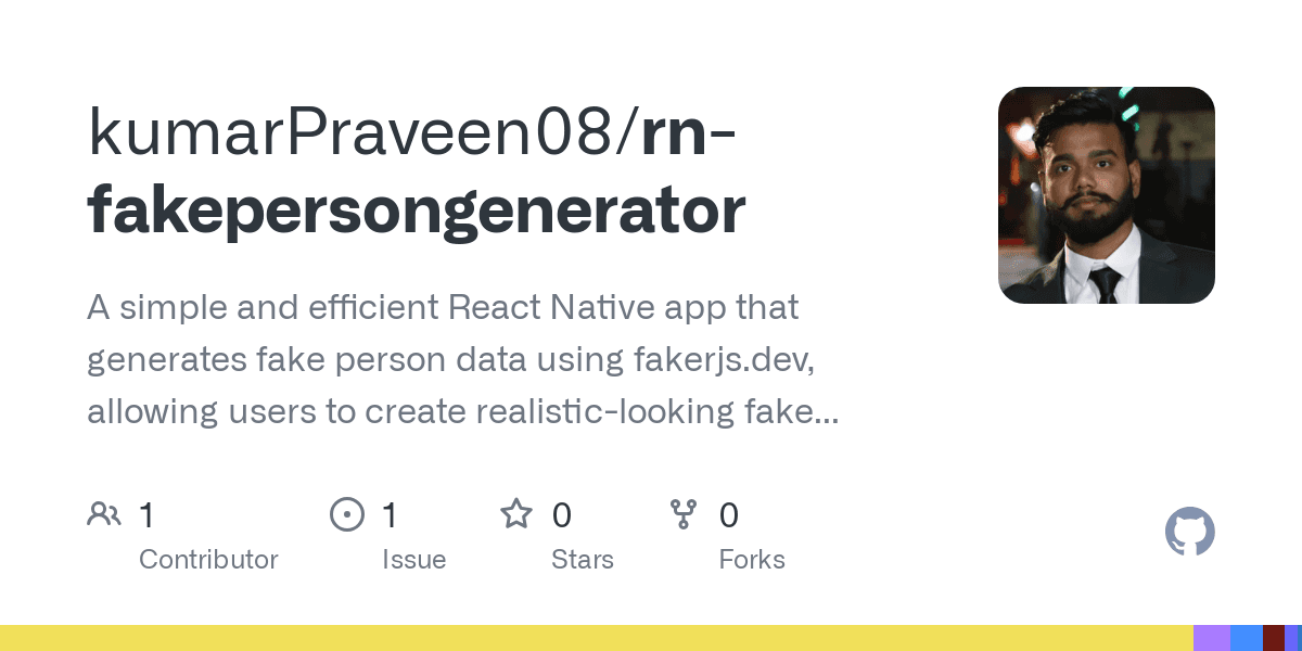 A simple and efficient React Native app that generates fake person data using fakerjs.dev, allowing users to create realistic-looking fake profiles.